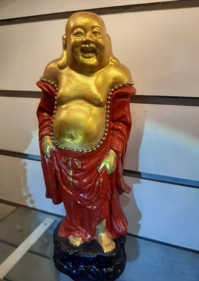 ESTÁTUA BUDA DA RIQUEZA (VERMELHO E OURO)